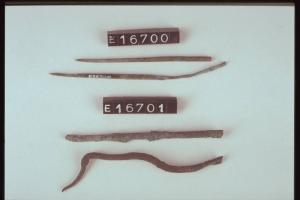 Due aghi di fibula, uno dei quali deformato