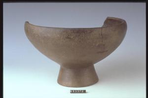 Ciotola a corpo troncoconico, orlo rientrante su medio piede.