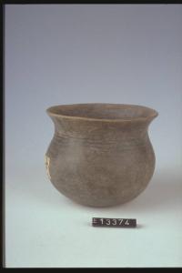 Bicchiere globulare decorato da linee incise sotto la gola.