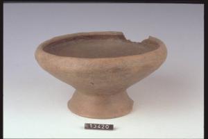 Ciotola su medio piede troncoconico con orlo rientrante.