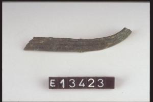 Frammento di armilla di nastro costolonato con chiusura a gancio.