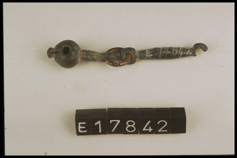 Sbarretta in bronzo con terminazione ad anello a pendaglio a melograno.
