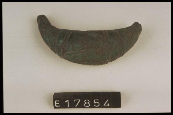 Arco della fibula decorato da incisioni trasversali e oblique.