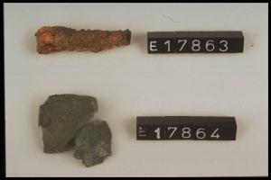 Frammento di ferro corroso con incrostazioni di ruggine