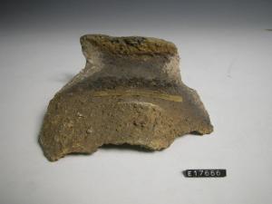 Dolio a corpo ovoide con alto labbro estroflesso; sulla parete piccola lingua.