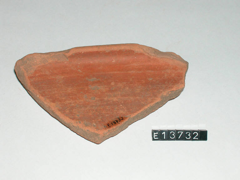 Frammento di orlo e parete di patera con labbro verticale: è dipinta la superficie interna.