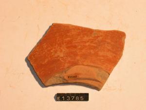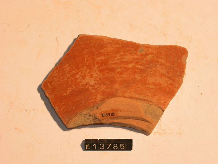 Frammento di fondo e parete di ciotola con piede ad anello e tracce di dipintura interna ed esterna.