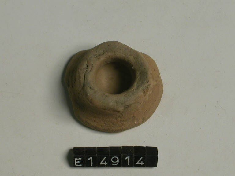 Piccolo piede a calice con fondo piatto, forse pertinente a un bicchiere a risega mediana tipo G