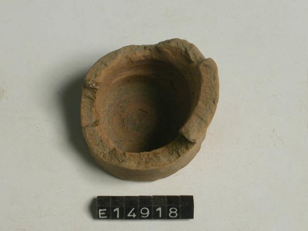 Frammento di fondo di bicchierino cilindrico con fondo piatto; forse appartiene a un bicchiere a risega mediana tipo G o F