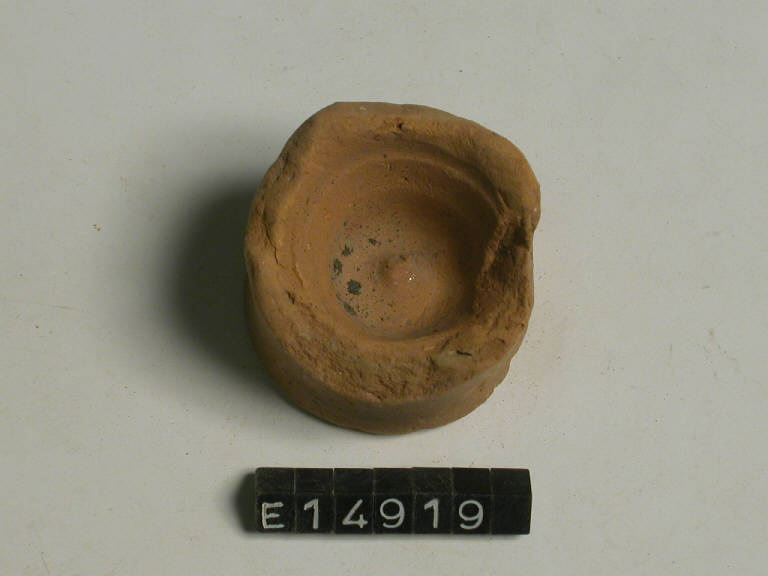 Frammento di fondo di bicchierino cilindrico con fondo piatto; forse appartiene a un bicchiere a risega mediana tipo G