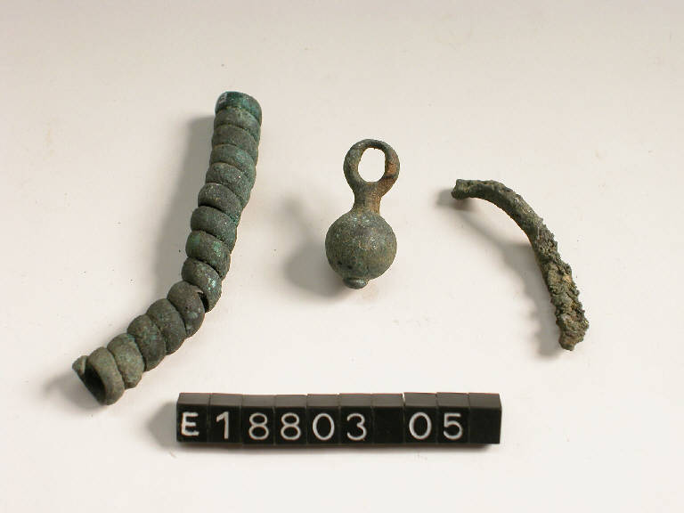 Elemento di collana in verghette di bronzo avvolto a fitta spirale.