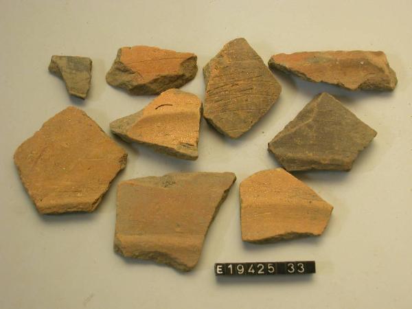 Frammento di orlo arrotondato distinto e parete di vasetto.