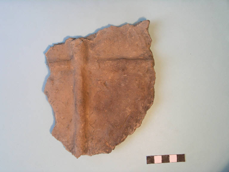 argilla/ lavorazione a mano||impasto grossolano, superficie scabra||colore bruno
