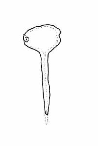 Spillone a capocchia biconica, forata orizzontalmente (tipo Ca' de' Cioss), sottile gambo a sezione circolare, spezzato a 2,5 cm dalla capocchia.