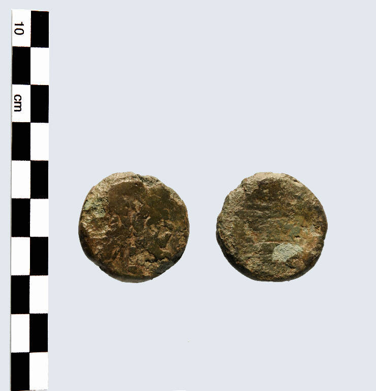 Si tratta di un'asse in bronzo coniato dalla Repubblica Romana, intesa come autorità statuale emittente; è impossibile risalire ad una tipologia di riferimento poichè il diritto è praticamente illeggibile, e la prua di nave presente sul rovescio contraddistingue diverse emissioni monetali. Non è possibile neppure ricostruire la legenda presente sulla moneta.