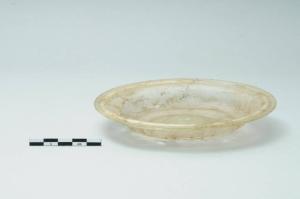 Piatto in vetro soffiato bianco opaco, orlo estroflesso orizzontale, parete leggermente carenata e piede ad anello