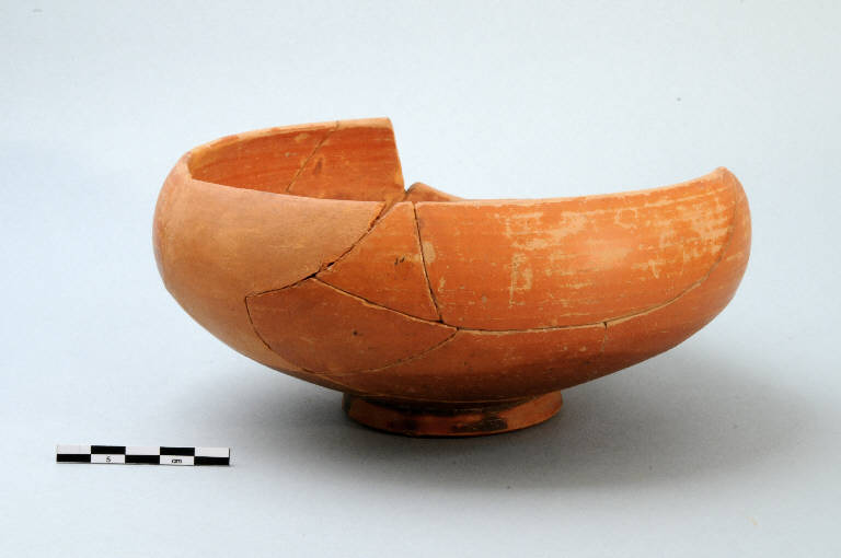 Coppa emisferica in terra sigillata, orlo rientrante e piede ad anello