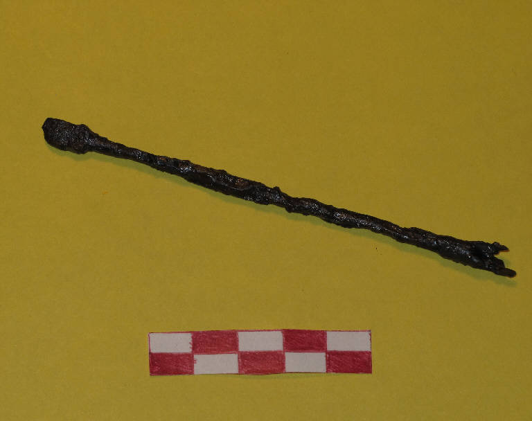 Spatolina (?) o stilo in ferro, mancante di un'estremità. Lungh. cons. cm 11,2; spess. max cm 0,5. Datazione: prima metà del I secolo d.C. Provenienza: Acquafredda, loc. Borgo dei Lupi, necropoli romana, tomba 11.
