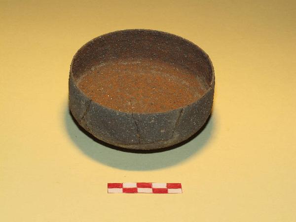Fondo e 8 fr.. di parete di coppetta in ceramica a pareti sottili tipo Marabini XXXVI. Corpo ceramico grigio, sabbiato sulle superfici.