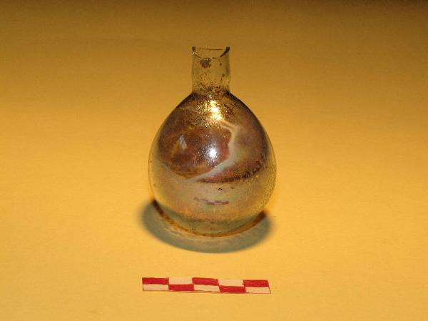 Balsamario in vetro di tipo Isings 8. Incolore, trasparete. Privo dell'orlo.