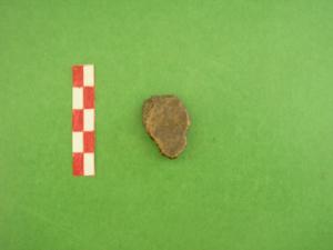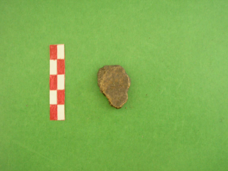 fr. di parete di vaso, terracotta grossolana di colore arancio all'esterno e grigio scuro all'interno.