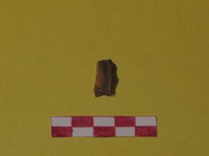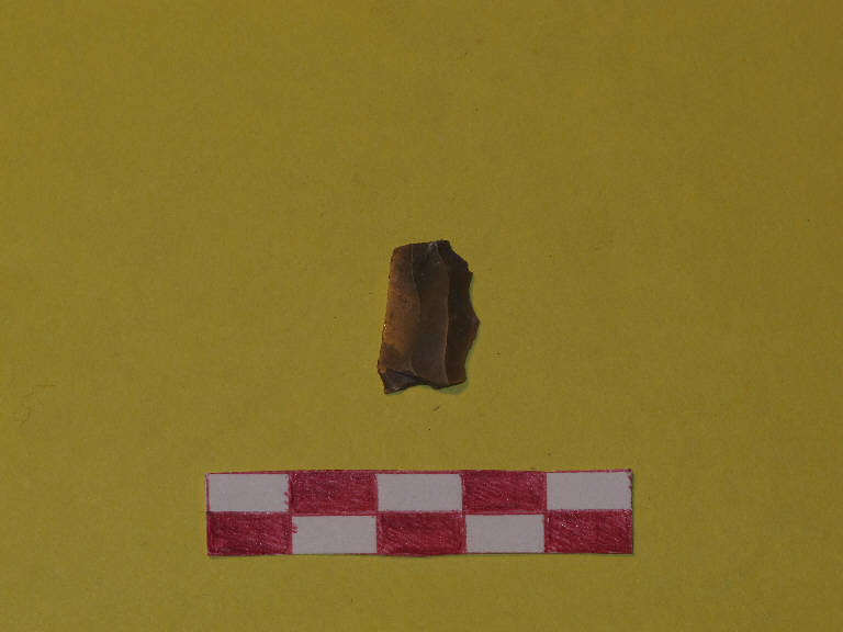 Lamella di selce di colore giallo ocra, a sezione triangolare.