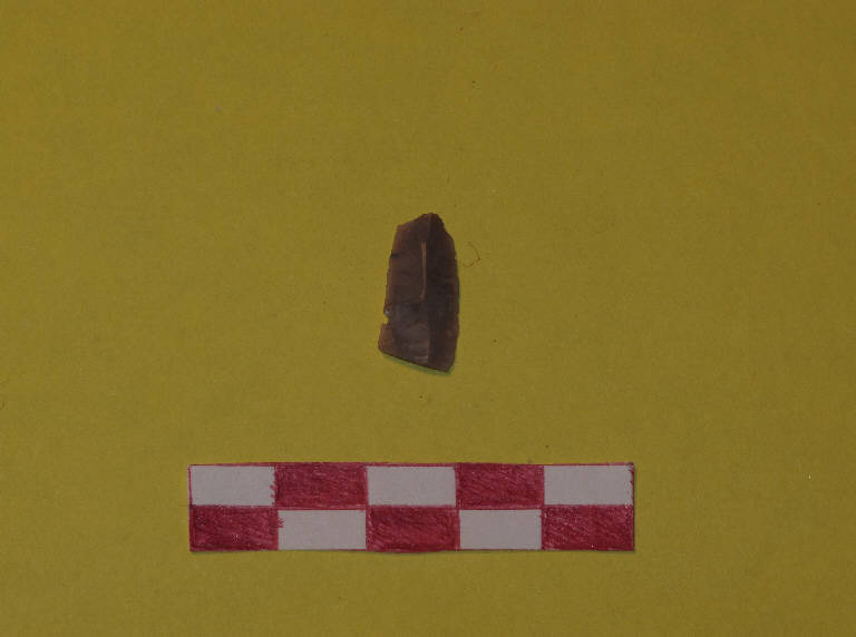 Lamella in selce di colore beige a sezionetriangolare-trapezoidale.