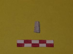 Lamella in selce di colore bianco, a sezione trapezoidale.