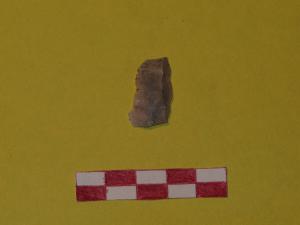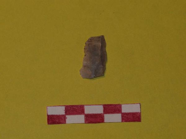 Lamella in selce di colore beige, a sezione trapezoidale molto sottile.