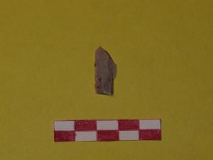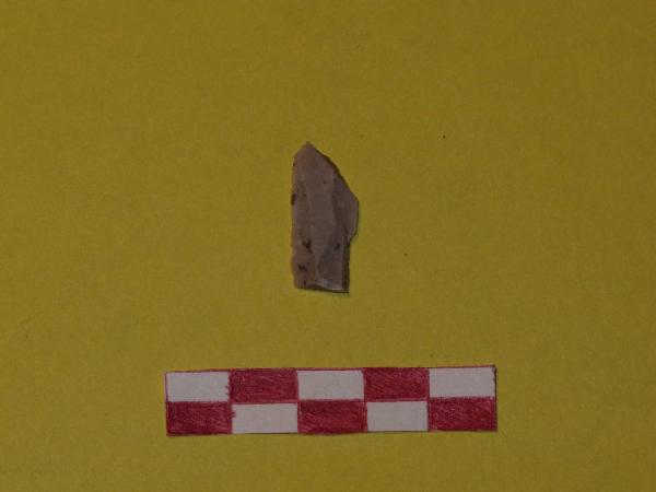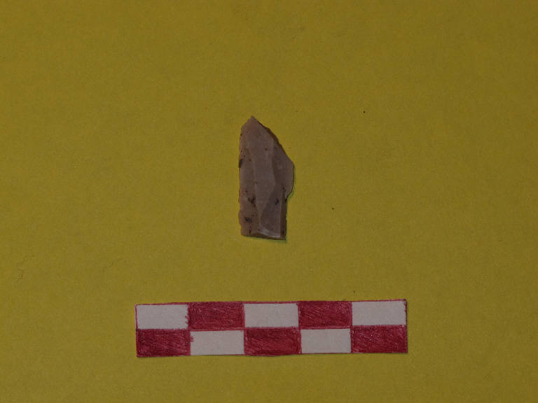 Lamella in selce grigio chiaro, a sezione trapezoidale.