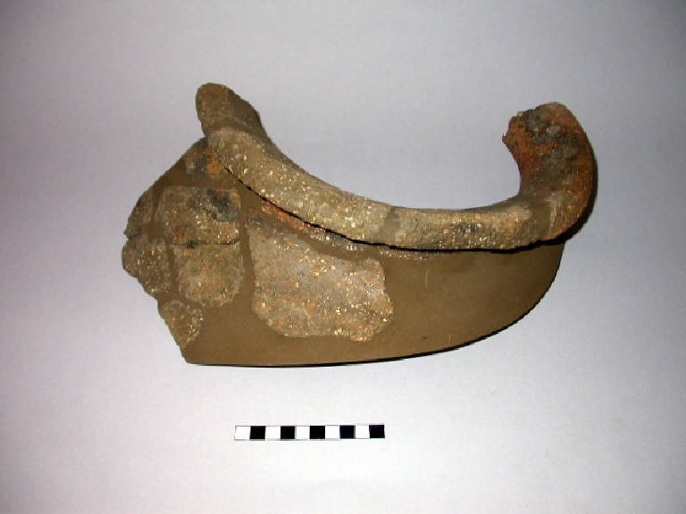 Grande dolio, prodotto in ceramica d'impasto, avente orlo ripiegato all'esterno. Decorazione plastica costituita da un cordone orizzontale applicato sulla spalla.