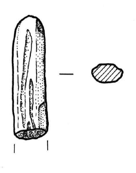 Estremità distale di corno con evidenti tracce di intaglio. Estremità distale arrotondata.