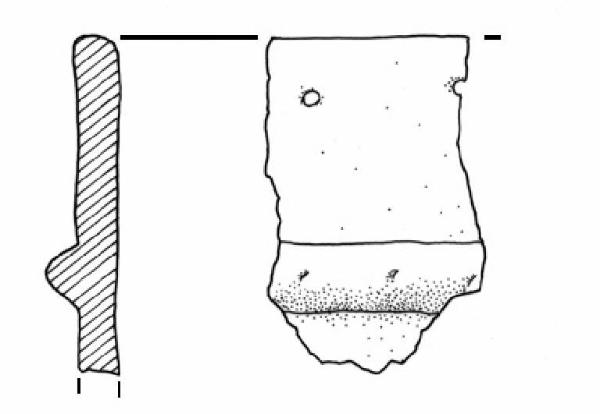 Orlo piatto multiforato con fori multipassanti, parete rettilinea. Cordone plastico con impressioni a polpastrello. Colore: grigio bruno.