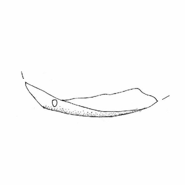 Forma semilunata a quattro fori passanti (se ne conserva uno) di tipo cilindrico in corrispondenza dei lati corti.