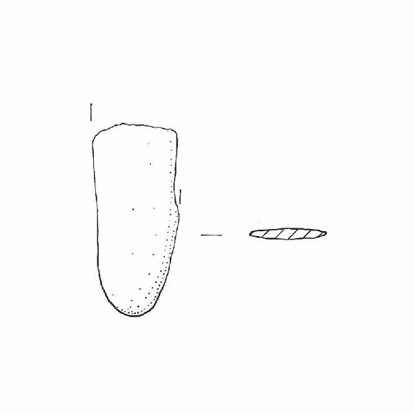 Lati con andamento grosso modo parallelo. Estremità prossimale rettilinea. Tagliente rettilineo e assottigliato.