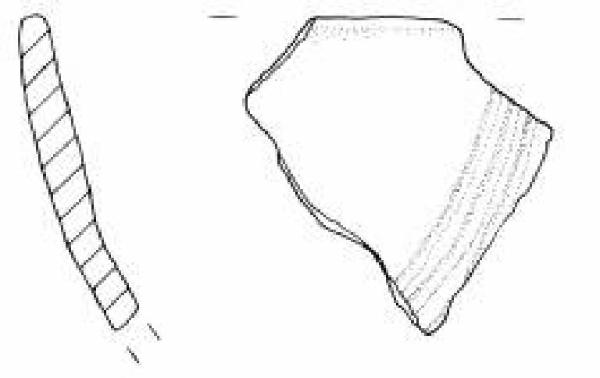 Orlo arrotondato. Vasca decorata con un fascio di solcature a festone semicircolare.