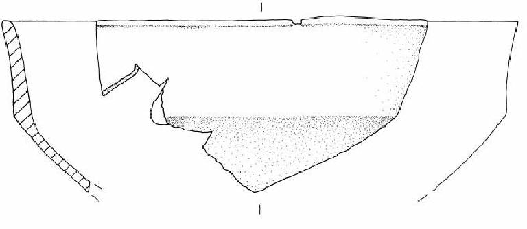Dieci frammenti con orlo piatto, leggermente esoverso. Parete superiore svasata. Carena a spigolo vivo e vasca troncoconica.