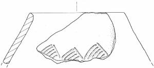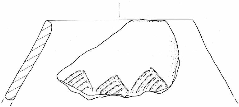 Orlo diritto. Parete del tronco di con superiore decorata a solcature con motivo a "denti di lupo" ovvero a triangoli campiti.