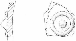 Parete con decorazione plastica costituita da un bugnetta circondata da cordone circolare applicato.