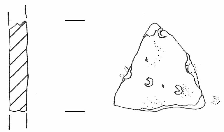 Piccolo fr. di parete di vaso di morfologia non ricostruibile.\nReca una decorazione a impressioni a C ottenute con l'estremità inclinata di una cannuccia cava, poste su due file sovapposte, impresse in direzione opposta. \nColore: bruno.