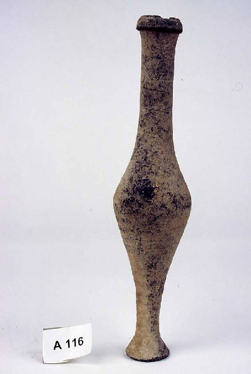 Piede svasato, corpo fusiforme a profilo continuo con orlo arrotondato.