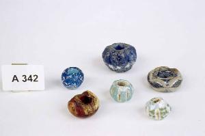 Perla sferoidale appiattita con foro centrale.
