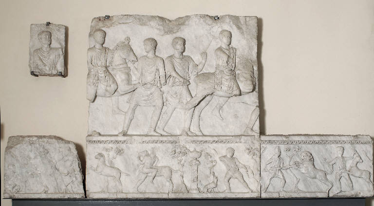 - NOTIZIE STORICO CRITICHE Il cosiddetto Rilievo dei cavalieri appartenne alla collezione Giovio fin dal XVI secolo e pervenne al Comune di Como nel 1873. Apparteneva a uno dei più importanti monumenti celebrativi innalzati a Como in età romana, probabilmente una grande ara o un mausoleo funerario. Il rilievo, realizzato nella prima metà del II secolo d.C., celebra uno evento di grande rilievo per i membri dell'ordine equestre, la parata solenne di cavalieri celebrata ogni anno a Roma. Un'altra ipotesi interpreta la scena come il corteo trionfale di alcuni giovani cavalieri distintisi in un'impresa di particolare importanza.