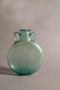 Orlo orizzontale, ripiegato a formare un cordoncino, breve collo cilindrico appena svasato, corpo lenticolare su base cava; anse bicostolate impostate sulla spalla, piegate ad angolo acuto si saldano al di sotto dell'orlo