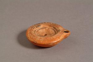 Monolicne, serbatoio troncoconico rovescio, spalla spiovente all'esterno, becco tondo, disco concavo delimitato da un cerchio a rilievo, fondo piano con anello impresso. Decorazione: sulla spalla fila di impressioni circolari con bottone centrale a rilievo