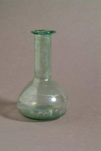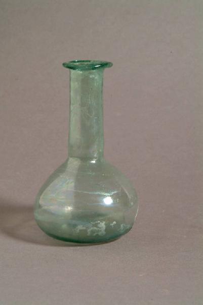 Orlo a cordoncino ripiegato, lungo collo con strozzatura all'attacco del corpo piriforme, base piatta