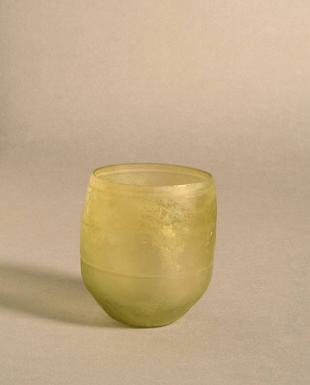 Orlo tagliato, corpo ovoidale con tre linee incise a distanza regolare, apodo