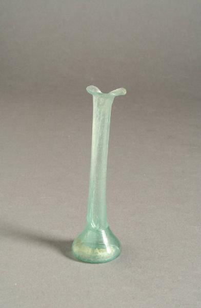 Orlo estroflesso e ripiegato, lungo collo cilindrico, corpo campaniforme schiacciato con strozzatura all'attacco del collo