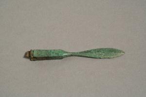Manico a profilo rettangolare terminante con una spatola spuntata a forma di foglia d'ulivo, lama rettangolare
