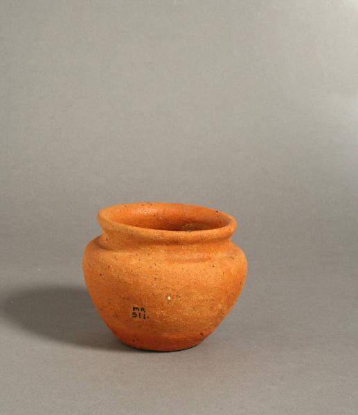 Olletta con labbro ingrossato, appena estroflesso, gola segnata e spalla rigonfia; il corpo tondeggiante a ventre rialzato ha fondo piatto